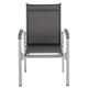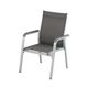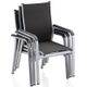 Křeslo nízké, stohovatelné, stříbrná hliníková konstrukce, elastická a odolná umělá tkanina v antracitovém odstínu