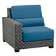 Křeslo, díl krajní levý, hliníková konstrukce, umělý výplet v odstínu antracitově černá, modrá poduška