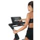 - Další výbava. Dva praktické držáky pro láhev s nápojem, stojánek na tablet či smartphone a mechanismus vyrovnávání nerovností podlahy (vzadu).