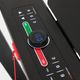 • Displej. 5 velkých LED displejů s bílým podsvícením přehledně zobrazuje měřené hodnoty: čas, rychlost, tréninkovou vzdálenost, puls a počet spálených kalorií. Udává také aktuální stupeň sklonu pásu nebo číslo zvoleného programu. V centrální části displeje se během tréninku pomocí LED světel simuluje běh na 400m atletickém oválu.