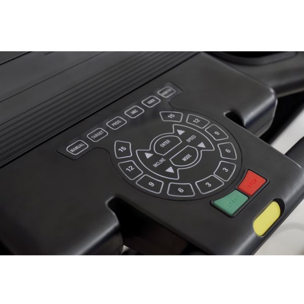• Programové vybavení. Nabídka zahrnuje: QuickStart pro okamžité zahájení tréninku, 24 přednastavených kombinovaných programů (12 programů v závislosti na stoupání / rychlosti, 6 v závislosti na rychlosti a 6 v závislosti na sklonu pásu ), 4 uživatelsky nastavitelné profily, 4 pulsem řízené programy a program Body Fat Test. Možnost předvolby cílových hodnot pro čas, vzdálenost, počet kroků a spotřebu energie (Countdown).