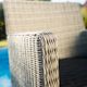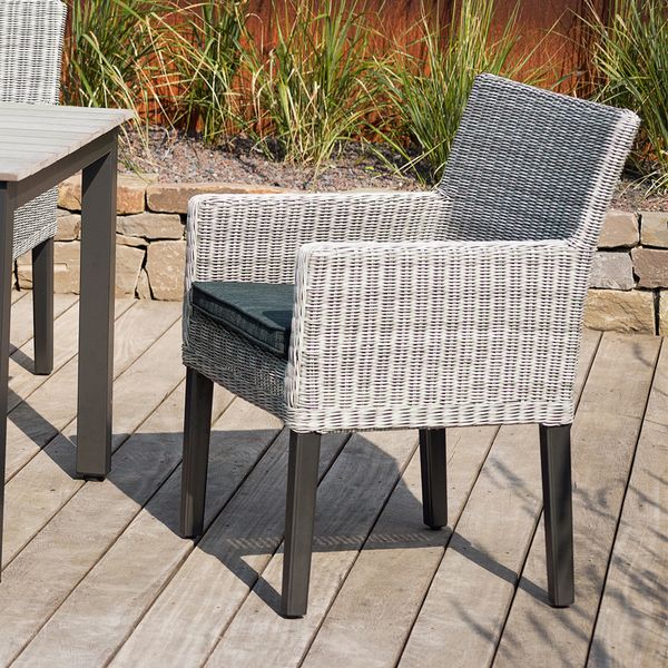Křeslo, stabilní hliníková konstrukce antracitové barvy, výplet v krémově bílém odstínu, poduška v barvě antracitu