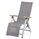 Křeslo relaxační, polohovatelné, sklápěcí, stabilní hliníková konstrukce stříbrné barvy, elastická a odolná umělá tkanina v antracitově šedém odstínu, týkové područky