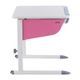 rostoucí psací stůl pro děti, nastavitelný sklon desky, integrované pravítko, prostorná zásuvka, transportní kolečka, deska bílá - růžová, vyroben v Německu