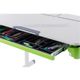 - dvě samostatné pracovní plochy – pevná zadní část nabízí prostor na odložení věcí, přední část pracovní plochy s nastavitelným sklonem pro pohodlnější psaní a kreslení