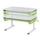 rostoucí psací stůl pro děti, nastavitelný sklon pracovní desky, výsuvná zásuvka, multifunkční pravítko, integrovaný box na kabely, transportní kolečka, deska bílá – zelená, vyroben v Německu