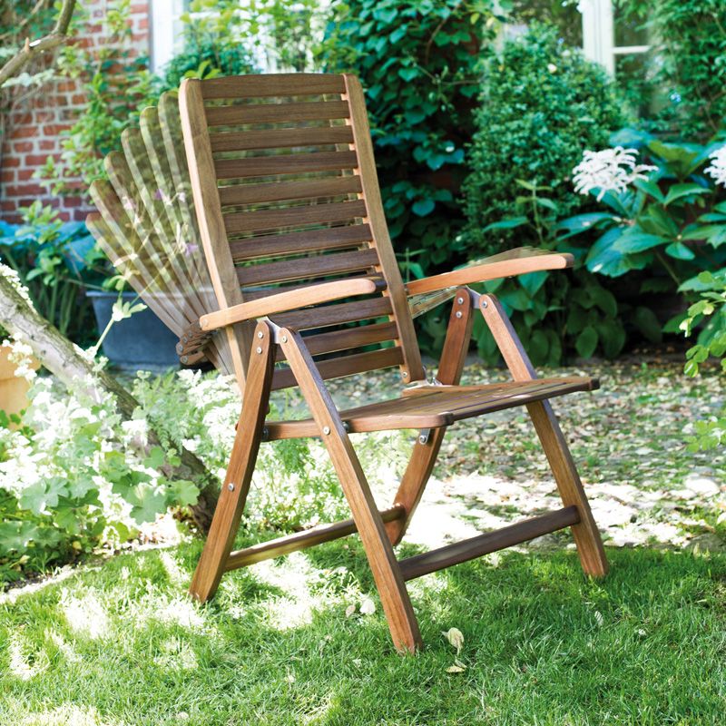 Křeslo polohovatelné, sklápěcí, vyrobeno ze 100% recyklovatelného certifikovaného akátu, přírodní