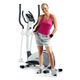 - Vybavení trenažéru. Ergonomicky tvarované kyvné páky pro trénink horní části těla, dodatečné držadlo uprostřed s dlaňovými senzory pro snímání pulsu a intenzivní trénink dolní části těla, nastavitelné protiskluzové nášlapné plochy, kolečka pro manipulaci (umístěná vpředu), mechanismus vyrovnávání nerovností podlahy (vzadu).