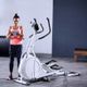 - Vybavení trenažéru. Ergonomicky tvarované kyvné páky pro trénink horní části těla, dodatečné držadlo uprostřed pro intenzivní trénink dolní části těla, stojánek na smartphone nebo tablet, kolečka pro manipulaci (umístěná vpředu), mechanismus vyrovnávání nerovností podlahy (vzadu).
