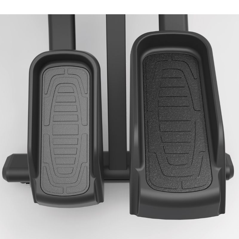 • Vybavení. Více úchopové, ergonomicky tvarované kyvné páky pro trénink horní části těla, dodatečné držadlo uprostřed s dlaňovými senzory pro snímání pulsu a intenzivní trénink dolní části těla, extra velké nášlapné plochy pro optimální pohyb a stojánek na tablet či smartphone.