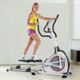 - Vybavení trenažéru. Ergonomicky tvarované kyvné páky pro trénink horní části těla, dodatečné držadlo uprostřed s dlaňovými senzory pro snímání pulsu a intenzivní trénink dolní části těla, praktická odkládací přihrádka, držák na ručník, kolečka pro manipulaci (umístěná vpředu), mechanismus vyrovnávání nerovností podlahy (vzadu).