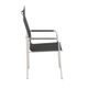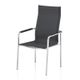 Křeslo stohovatelné s vyšší, ergonomicky tvarovanou zádovou opěrkou, stabilní konstrukce z nerezové oceli, mírně zaoblené hliníkové područky, odolný textilní výplet v odstínu charcoal