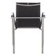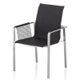 Křeslo stohovatelné, stabilní konstrukce z nerezové oceli, pohodlné područky z umělé hmoty, odolný textilní výplet v odstínu charcoal
