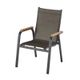 Křeslo stohovatelné, stabilní hliníková konstrukce v antracitovém odstínu, elastická a odolná umělá tkanina v bronzové barvě, týkové područky