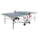 vnitřní stůl, sklopitelný, šedá hrací plocha, výkyvná kolečka s brzdou, síťka součástí stolu, držák na pálky a míčky, možnost hry jednoho hráče, vyroben v Německu