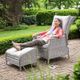 Křeslo polohovatelné, stabilní hliníková konstrukce, odolný výplet v krémově bílém odstínu, barevně sladěná poduška