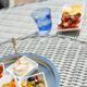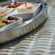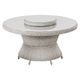 Stůl o průměru 144 cm, výška stolu 74 cm, stabilní hliníková konstrukce, umělý výplet krémově bílé barvy, kvalitní deska z bezpečnostního skla