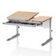 - dělená pracovní plocha - jedna třetina je pevně přimontována ve vodorovné poloze, dvě třetiny plochy jsou tvořeny sklopnou deskou pro pohodlnější psaní a kreslení