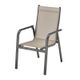 Křeslo stohovatelné, robustní a současně lehké díky hliníkové konstrukci antracitové barvy, elastický a odolný textilní výplet v krémově šedém odstínu, hliníkové područky