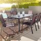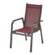 Křeslo stohovatelné, robustní a současně lehké díky hliníkové konstrukci antracitové barvy, elastický a odolný textilní výplet v odstínu bordeaux, hliníkové područky