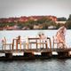 Stůl 160 x 95 cm, výška stolu 75 cm, certifikovaný týk, bílá deska Kettalux