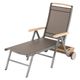 Lehátko pojízdné, polohovatelné do 4 poloh, stabilní hliníková konstrukce v antracitovém odstínu, elastická a odolná umělá tkanina v bronzové barvě, týkové područky a madlo opěradla