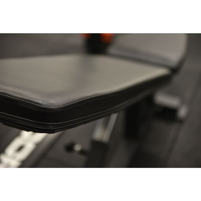 - Polohovatelná posilovací lavice vhodná pro trénink s jednoručkami, s dlouhou osou nebo stojanem.