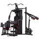 multifunkční posilovací věž, 3 tréninková stanoviště, horní i spodní kladka, bicepsová opěrka, dřepy ve stoje, Leg Press, centrální kryté závaží 72 kg, nosnost 120 kg, hmotnost 173 kg
