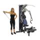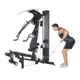 multifunkční posilovací věž, kompaktní rozměry, stabilní ocelová konstrukce, řada nastavitelných adaptérů, polohovatelná lavice i sedák, jednoduché nastavení zátěže, závaží 75 kg, nosnost 150 kg, hmotnost 186 kg