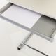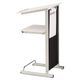 řečnicky pult, odkládací přihrádka se zásuvkou, transportní kolečka, stříbrná - bílá, vyroben v Německu