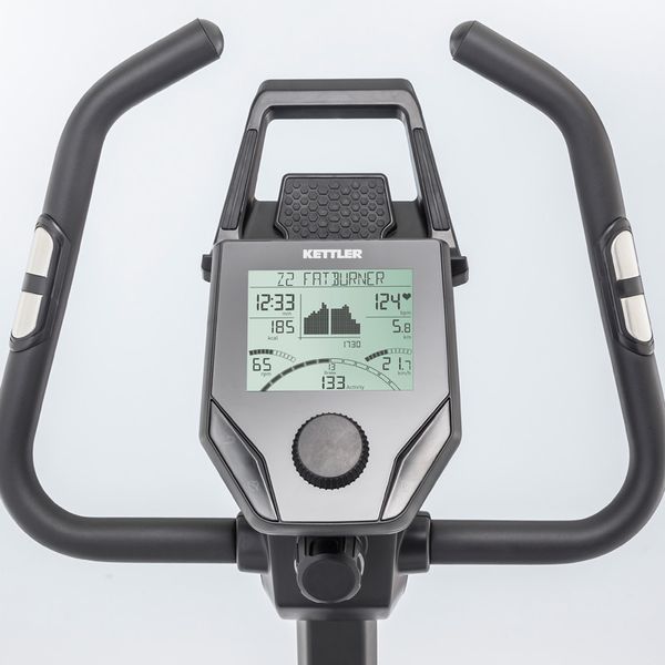 - Tréninkový počítač. Přehledný a snadno ovladatelný LC displej 11,7 x 8,6 cm zobrazuje šest nejdůležitějších tréninkových hodnot. Měří čas, rychlost, tréninkovou vzdálenost, puls, frekvenci šlapání za minutu a spotřebu energie. Vyhodnocení vydýchávacího pulsu včetně stanovení kondiční známky 1-6. Možnost předvolby cílových hodnot pro čas, vzdálenost a spotřebu energie, průměrná tréninková data se zobrazují během i po skončení tréninku.