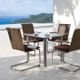 Odpružené Křeslo SAFINO se postará o klidné a pohodlné posezení či pohupování v zahradě, ale i v interiéru. Půvabná kombinace materiálů z oceli, prodyšného výpletu a týkového dřeva coby komfortních područek.