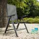 Křeslo polohovatelné, robustní a zároveň lehké díky hliníkové konstrukci antracitové barvy, elastická a odolná umělá tkanina v antracitově hnědém odstínu