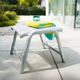 Stolička, stříbrná hliníková konstrukce, elastická a odolná umělá tkanina v bílo-šedém odstínu