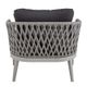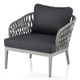 Křeslo lounge, stabilní a lehká hliníková konstrukce v barvě platiny, vzdušný výplet z polypropylenových vláken o tloušťce 1,5 cm, pohodlné podušky a polštáře v antracitově šedém odstínu