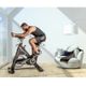 trenažér pro indoor cycling s přítlačnou brzdou, manuální nastavení zátěže, kombinované SPD pedály, bezpečnostní rychlobrzda, hrudní pás, dva držáky na láhev, variabilní, LCD displej, vyvážený 26 kg setrvačník, nosnost 150 kg