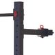 nástěnný stojan na velkou činku, 2 „J“ háky s nastavitelnou výškou od 45 až 185 cm, možnost sklopení ke stěně pro úsporu místa, zesílené ocelové profily 75 x 75 x 3 mm, kotvící materiál součástí balení, max. nosnost 300 kg, hmotnost 61 kg