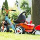 dětské vozítko pro děti od 2 let, ruční brzda, polohovatelné sedadlo, vodící tyč, vyklápěcí košík se sadou hraček, nosnost do 50 kg