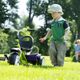 dětské vozítko pro děti od 2 let, ruční brzda, polohovatelné sedadlo, vodící tyč, vyklápěcí košík se sadou hraček, nosnost do 50 kg