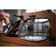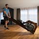 • Mechanismus překlopení trenažéru. Překlopení trenažéru do vertikální polohy je velmi praktickým řešením zejména při nedostatku úložných prostor, umožňuje bezproblémové skladování veslovacího trenažéru i v menších místnostech. Manipulaci s trenažérem usnadní transportní kolečka (umístěná vpředu).