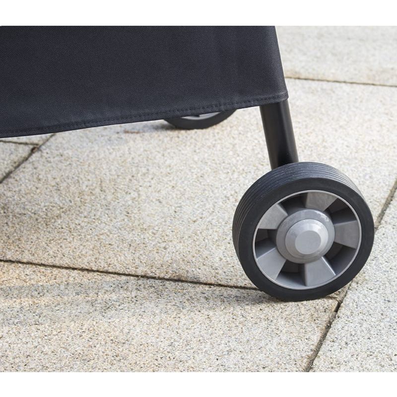- Dvě velká, pogumovaná kolečka pro snadné přemisťování grilu.