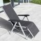Zahradní křeslo relaxační, stabilní hliníková konstrukce stříbrné barvy, pružný výplet s integrovaným polstrováním v antracitovém odstínu