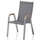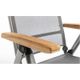 Křeslo nízké, stohovatelné, stříbrná hliníková konstrukce, elastická a odolná umělá tkanina v antracitově šedém odstínu, týkové područky