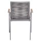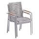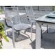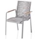 Zahradní křeslo stohovatelné, stabilní hliníková konstrukce stříbrné barvy, vzdušný výplet ve světle šedém odstínu, týkové područky