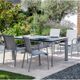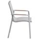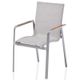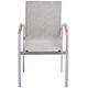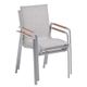 Zahradní křeslo stohovatelné, stabilní hliníková konstrukce stříbrné barvy, odolná umělá tkanina ve světle šedém odstínu, týkové područky